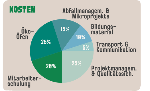 Dauerhaftes Umweltbewusstsein schaffen. Energiekosten senken (bis zu 66 % mit Öko-Öfen, 900 € pro Jahr & Schule). 50 % der Energieeinsparungen werden reinvestiert, um Öko-Öfen in neuen Schulen zu finanzieren. Neue Bildungs- und Berufschancen für Jugendliche schaffen.